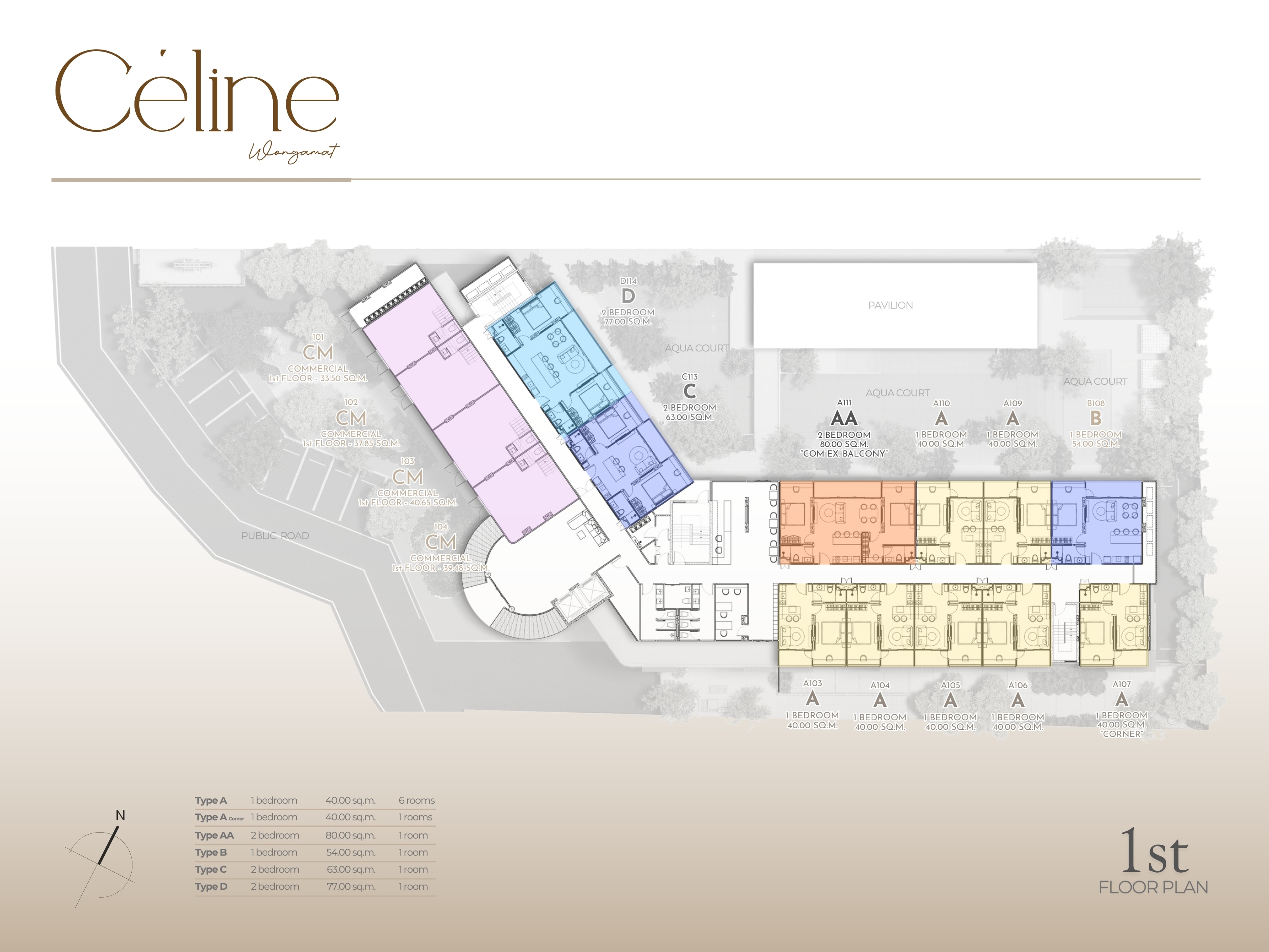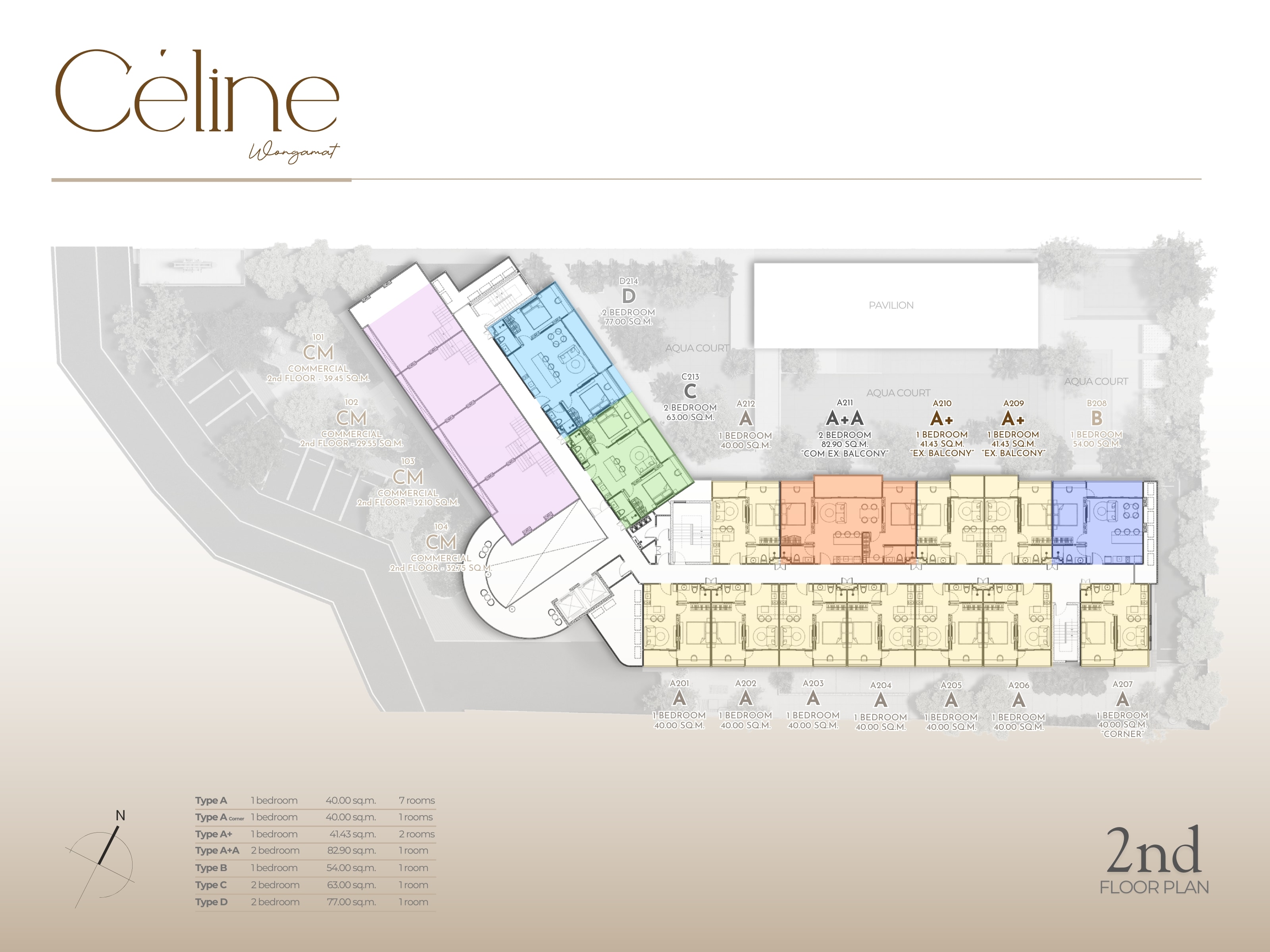 CELINE Wongamat Pattaya — это низкоэтажный бутик-комплекс на 126 квартир, который закладывает акцент не на количестве, а на атмосфере: всего один корпус на компактном участке, окружённый естественной зеленью и оформленный как камерный курорт. Жилые пространства продуманы для длительного проживания: комфортные площади, функциональные планировки, качественная чистовая отделка и возможность полностью меблированных решений позволяют сразу использовать квартиру как второй дом у моря или готовый арендный продукт.